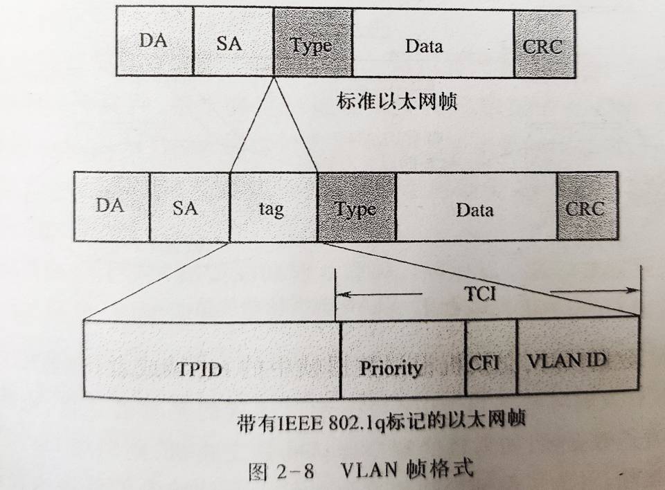 规定在标准以太网帧添加一个特殊的标志域-tag域。用于表示数据帧所属的VLANID。tag域包括2字节的标签协议IPID和2字节的标签控制信息TCI。TCI包括3bit的优先级信息Priority,CFI说明VLAN格式。
