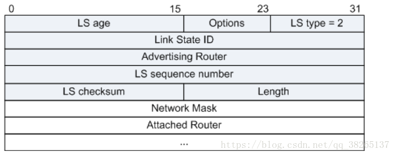 第二类链路状态通告信息LSANetwork中的链路状态描述: