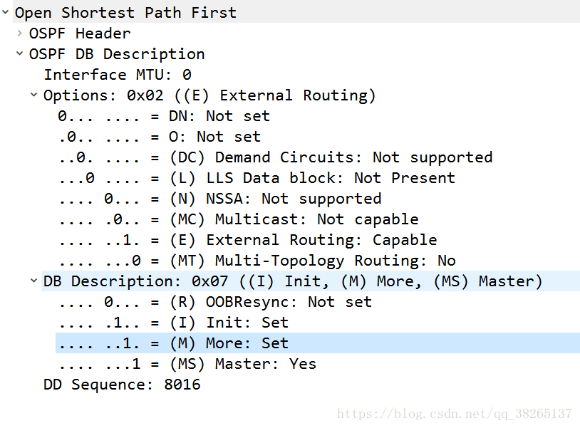 | M (More) | 1比特 | 当发送连续多个DD报文时,如果这是最后 |