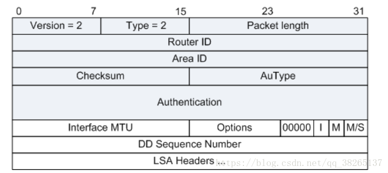| I | 1比特 | 当发送连续多个DD报文时,如果这是第一个DD报文 |