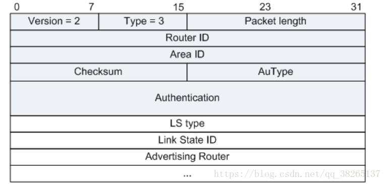 LSR:Link-State Request 请求链路状态,在数据库同步过程中使用,请求其他角色发送自己失去的LSA最新版本。内容包括所需要的LSA的摘要。