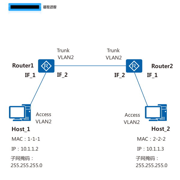 - 经过与同设备VLAN内互访的步骤3~6一样的过程后,Router_2将向其出接口IF_2转发Host_2的ARP响应报文,转发前,因为接口IF_2为Trunk接口且PVID=1(缺省值),与报文的VID不相等,直接透传报文到Router_1的IF_2接口。