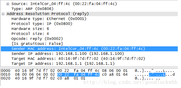 ARP响应报文是一个单播报文,只会被发送给请求者。一个例子如图: