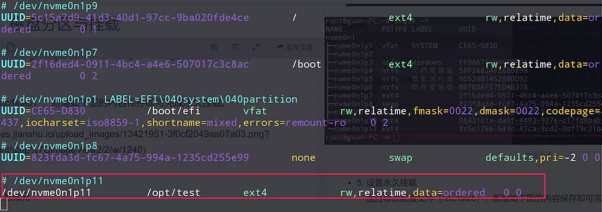 1 | mount /dev/nvme0n1p11 /opt/test # 这里是挂载命令 |