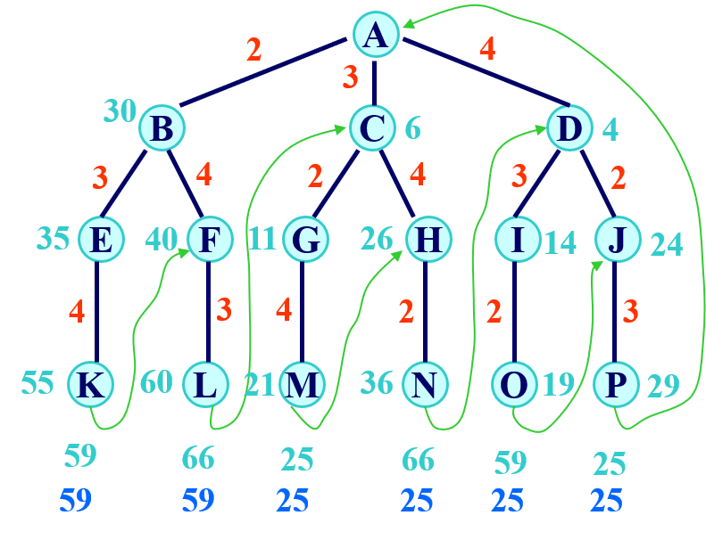 - 贪心法可求得问题近似解1→3 → 5 → 4 → 2 → 1,其路径长度为1+2+3+7+3=16,作为问题上界ub;