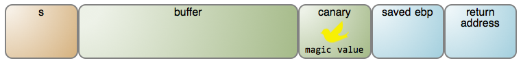 金丝雀是通过汇编来实现的。例如,由于 GCC 的 栈保护器 选项的原因使金丝雀能被用于任何可能有漏洞的函数上。函数序言加载一个魔法值到金丝雀的位置,并且在函数结语时确保这个值完好无损。如果这个值发生了变化,那就表示发生了一个缓冲区溢出(或者 bug),这时,程序通过 __stack_chk_fail 被终止运行。由于金丝雀处于栈的关键位置上,它使得栈缓冲区溢出的漏洞挖掘变得非常困难。