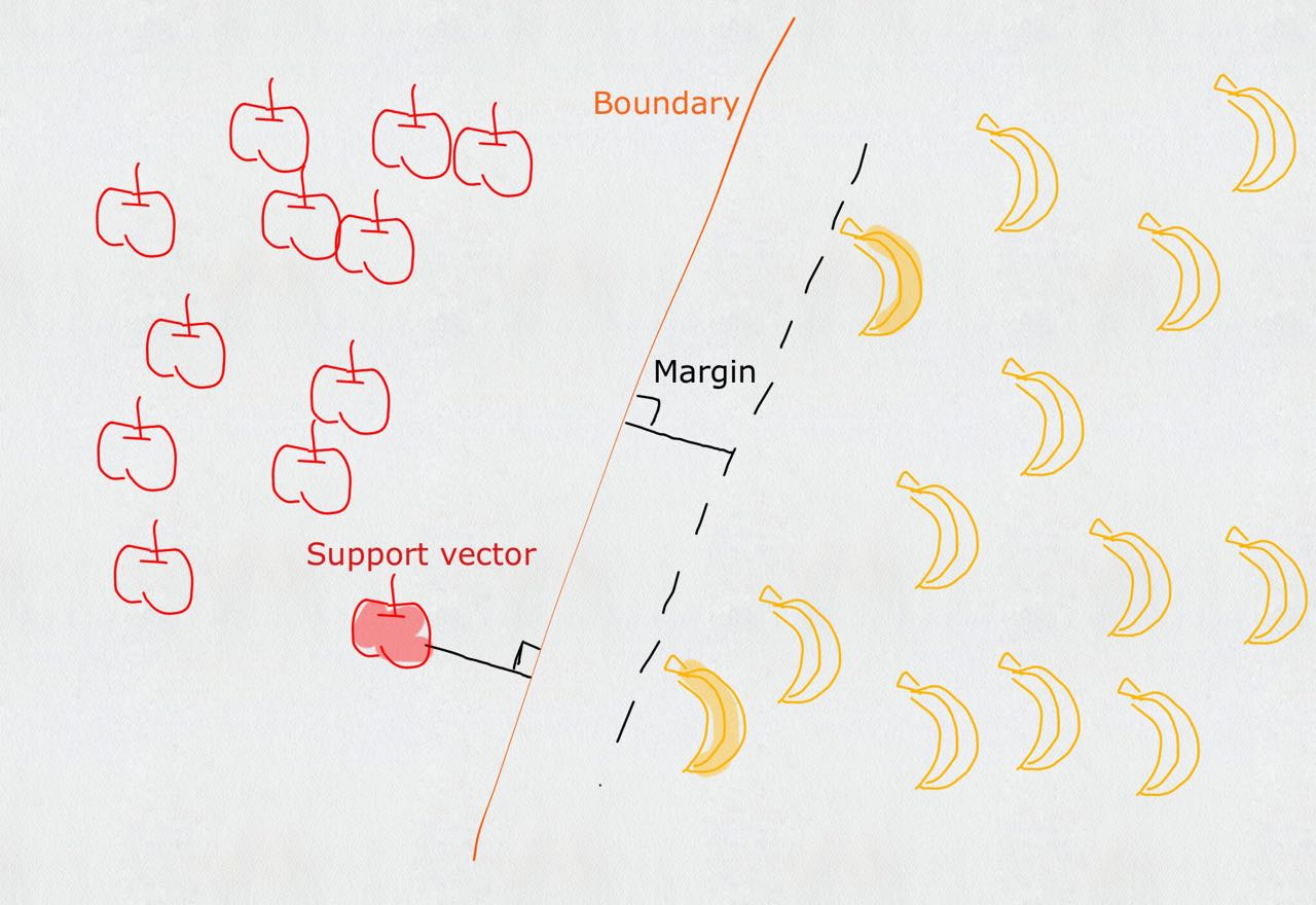 # 计算出一个新的alphas[j]值 alphas[j] -= labelMat[j]*(Ei - Ej)/eta # 并使用辅助函数,以及L和H对其进行调整 alphas[j] = clipAlpha(alphas[j], H, L) # 检查alpha[j]是否只是轻微的改变,如果是的话,就退出for循环。 if (abs(alphas[j] - alphaJold) < 0.00001): print("j not moving enough") continue # 然后alphas[i]和alphas[j]同样进行改变,虽然改变的大小一样,但是改变的方向正好相反 alphas[i] += labelMat[j]*labelMat[i]*(alphaJold - alphas[j]) # 在对alpha[i], alpha[j] 进行优化之后,给这两个alpha值设置一个常数b。 # w= Σ[1~n] ai*yi*xi => b = yj- Σ[1~n] ai*yi(xi*xj) # 所以: b1 - b = (y1-y) - Σ[1~n] yi*(a1-a)*(xi*x1) # 为什么减2遍? 因为是 减去Σ[1~n],正好2个变量i和j,所以减2遍 b1 = b - Ei- labelMat[i]*(alphas[i]-alphaIold)*dataMatrix[i, :]*dataMatrix[i, :].T - labelMat[j]*(alphas[j]-alphaJold)*dataMatrix[i, :]*dataMatrix[j, :].T b2 = b - Ej- labelMat[i]*(alphas[i]-alphaIold)*dataMatrix[i, :]*dataMatrix[j, :].T - labelMat[j]*(alphas[j]-alphaJold)*dataMatrix[j, :]*dataMatrix[j, :].T if (0 < alphas[i]) and (C > alphas[i]): b = b1 elif (0 < alphas[j]) and (C > alphas[j]): b = b2 else: b = (b1 + b2)/2.0 alphaPairsChanged += 1 print("iter: %d i:%d, pairs changed %d" % (iter, i, alphaPairsChanged)) # 在for循环外,检查alpha值是否做了更新,如果更新则将iter设为0后继续运行程序 # 直到更新完毕后,iter次循环无变化,才退出循环。 if (alphaPairsChanged == 0): iter += 1 else: iter = 0 print("iteration number: %d" % iter) return b, alphas