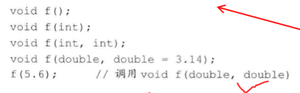 - 选出能被实参调用的函数,称为可行函数。实参与形参的数量相等;实参与形参对应的类型相同。