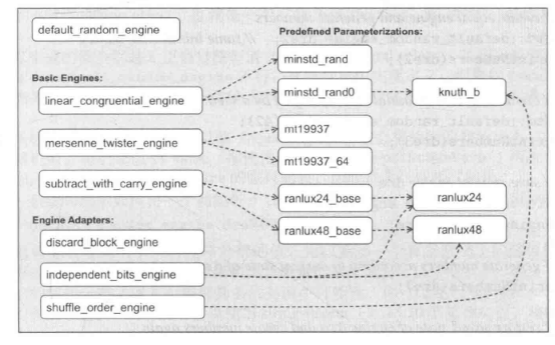 - 编译器会自动选择一个随机数引擎作为default_random_engine的类型的引擎。