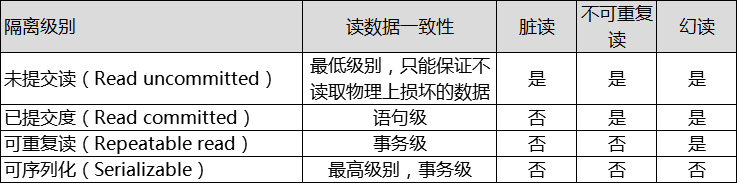 - 可串行化(SERIALIZABLE)强制事务串行执行,这样多个事务互不干扰,不会出现并发一致性问题。该隔离级别需要加锁实现,因为要使用加锁机制保证同一时间只有一个事务执行,也就是保证事务串行执行。