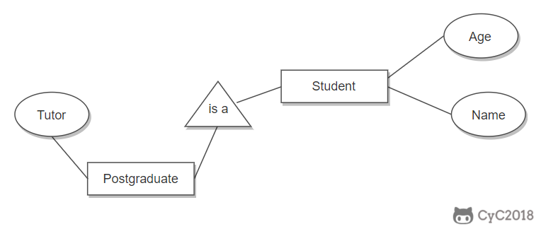 用一个三角形和两条线来连接类和子类,与子类有关的属性和联系都连到子类上,而与父类和子类都有关的连到父类上。