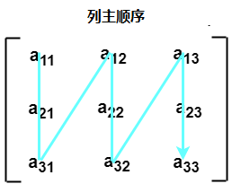 - 按列主顺序如果数组由a[m][n]声明,其中m是行数,而n是列数,则以列主顺序存储的数组的元素a[i][j]的地址计算为,