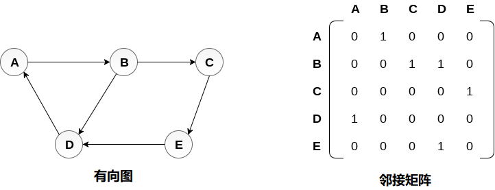 有向图及其邻接矩阵表示如下图所示。