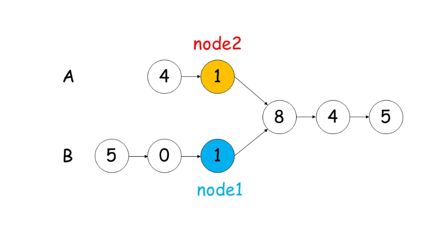- 当 node1 到达链表 headA 的末尾时,重新定位到链表 headB 的头结点;