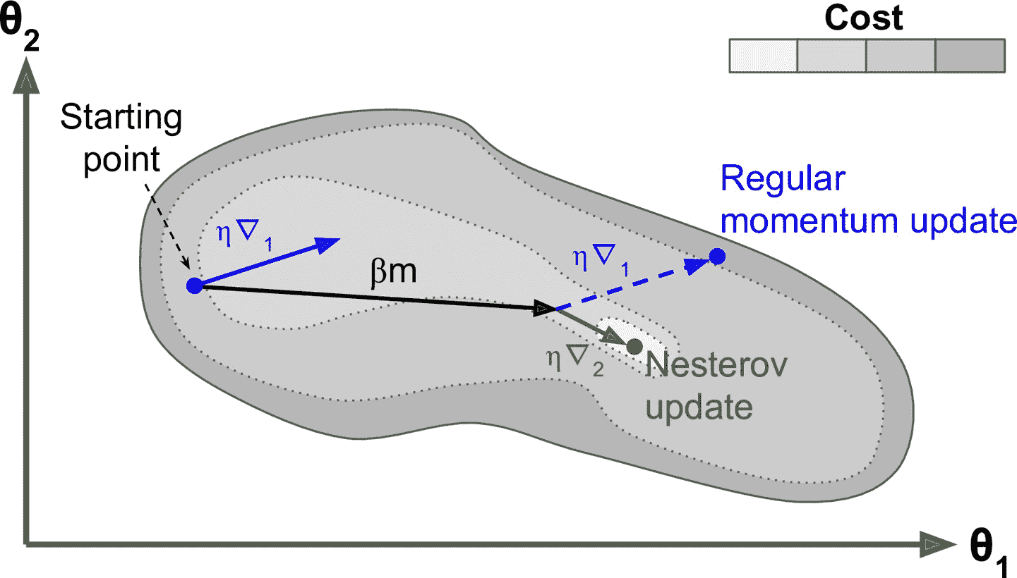 momentum的最优值通常接近于 1:比如,0.9、0.99、0.999(大数据的 9 更多,小数据集的 9 少)。