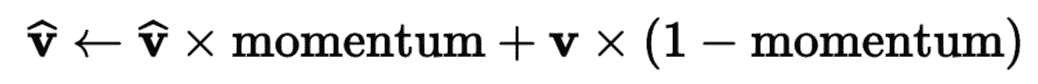 BatchNormalization类可供调节的参数不多。默认值通常就可以,但有时需要调节momentum,这个超参数是BatchNormalization在更新指数移动平均时使用的。给定一个新值v(即,一个当前批次的输入平均或标准差新向量),BN 层使用下面的等式更新平均V_hat: