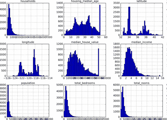 欢迎来到机器学习房地产公司!你的第一个任务是利用加州普查数据,建立一个加州房价模型。这个数据包含每个街区组的人口、收入中位数、房价中位数等指标。