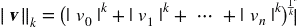 n个元素的向量v的ℓk范数(K 阶闵氏范数),定义成