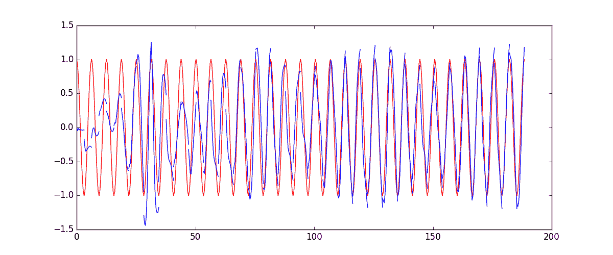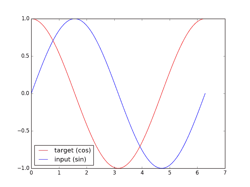 下面的代码就能实现动图的效果啦~开心, 可以看出, 我们使用 x 作为输入的 sin 值, 然后 y作为想要拟合的输出, cos 值. 因为他们两条曲线是存在某种关系的, 所以我们就能用 sin 来预测 cos. rnn 会理解他们的关系, 并用里面的参数分析出来这个时刻 sin 曲线上的点如何对应上 cos 曲线上的点.