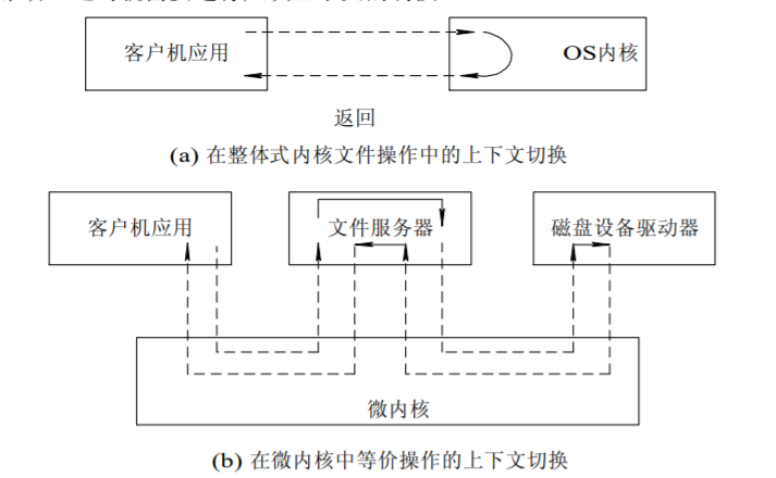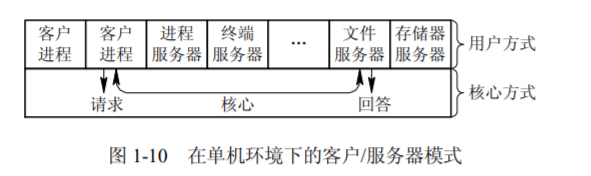 - 微内核概念:由于操作系统不断复杂,因此将一部分操作系统功能移出内核,从而降低内核的复杂性。移出的部分根据分层的原则划分成若干服务,相互独立。在微内核结构下,操作系统被划分成小的、定义良好的模块,只有微内核这一个模块运行在内核态,其余模块运行在用户态。