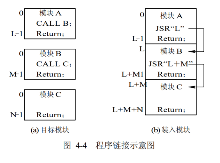 - 装入时动态链接。这是指将用户源程序编译后所得到的一组目标模块,在装入内存时,采用边装入边链接的链接方式。