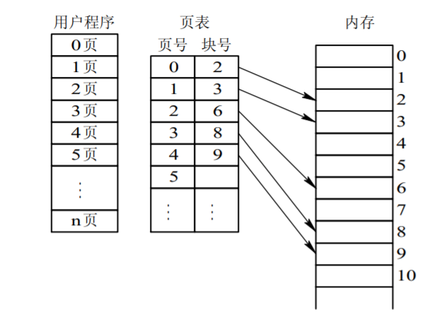 - 系统又为每个进程建立了一张页面映像表,简称页表。在进程地址空间内的所有页(0~n),依次在页表中有一页表项,其中记录了相应页在内存中对应的物理块号。在配置了页表后,进程执行时,通过查找该表,即可找到每页在内存中的物理块号。页表的作用是实现从页号到物理块号的地址映射。