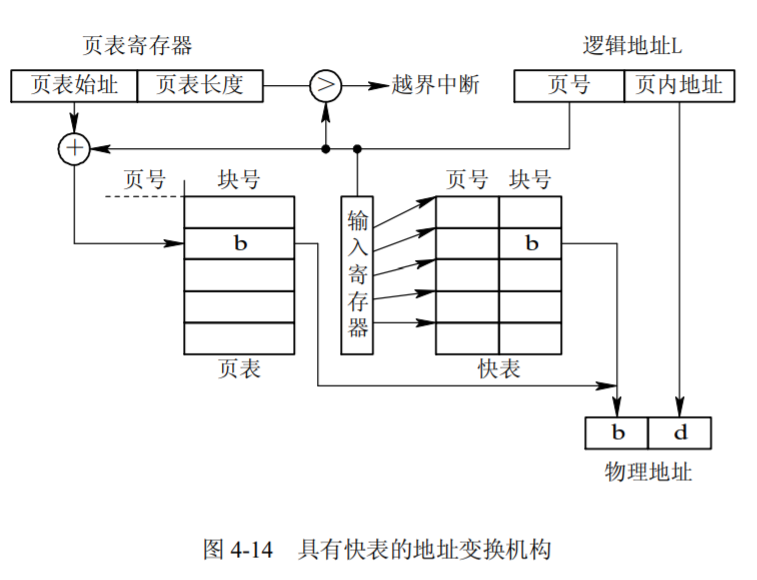 - 地址变换机构中增设一个具有并行查寻能力的特殊高速缓冲寄存器,又称为“联想寄存器”(Associative Memory),或称为“快表”,