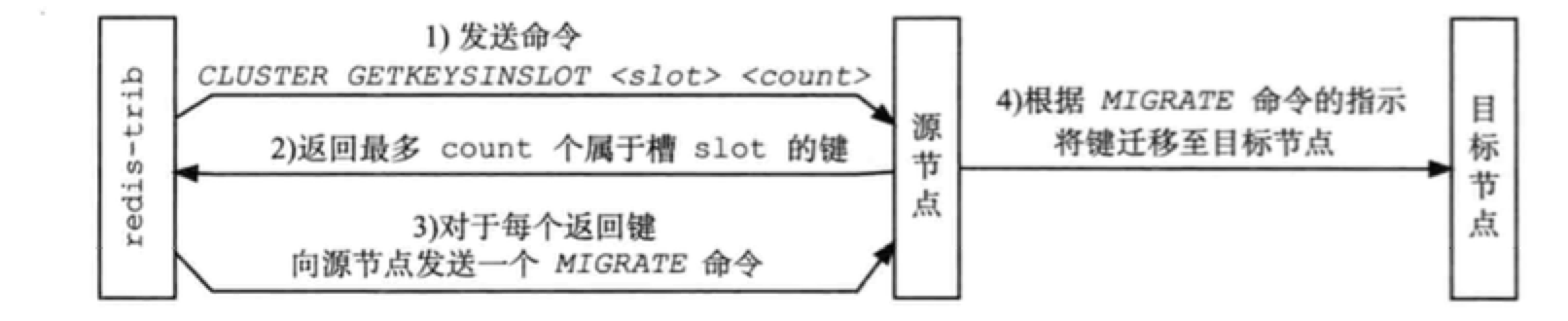 重新分片是由Redis的集群管理软件redis-trib负责的,Redis提供了重新分片所需的所有命令,redis-trib则通过向源节点和目标节点发送命令来实现重新分片: