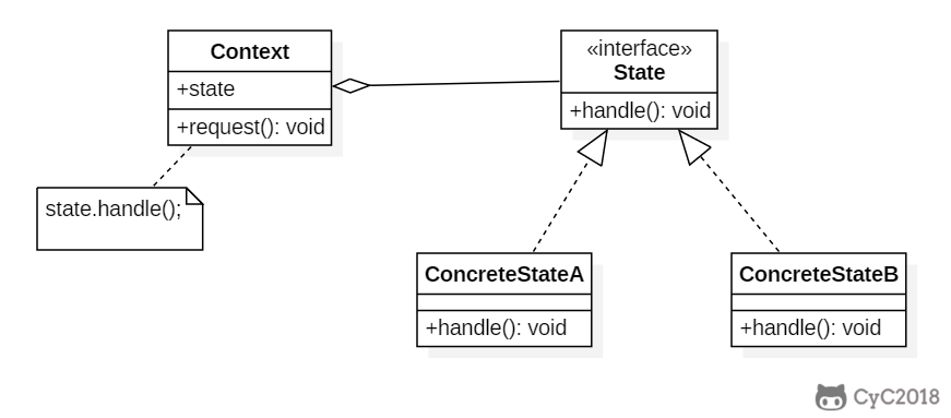 8. 状态(State) Intent 允许对象在内部状态改变时改变它的行为,对象看起来好像修改了它所属的类。