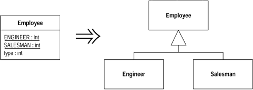 3 Replace Type Code with Subclasses(以子类取代类型码) 如果一个类中有一个不可变的类型码,而且它会影响到类的行为,这时就可以以子类来取代这个类型码。一般来说,这种情况的标志就是出现switch或if/else结构,它们检查类型码的值,并根据不同的值执行不同的动作。