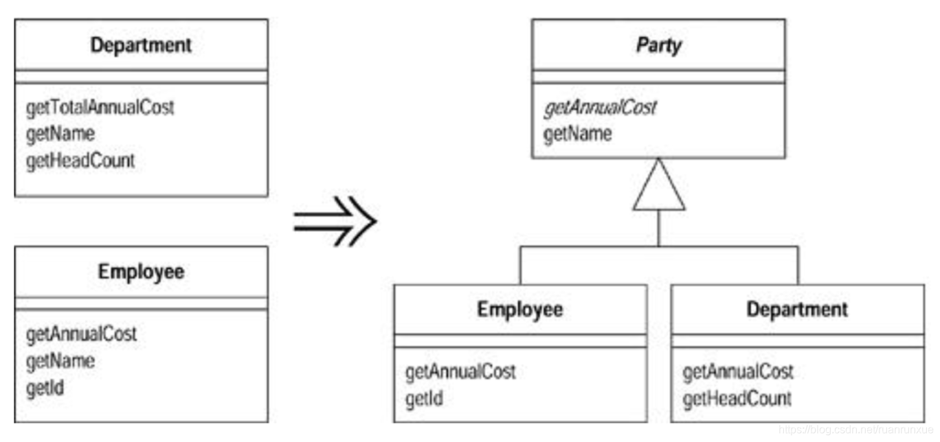 如果两个子类有相同的函数而且产生完全相同的结果,则将该函数上移至超类。