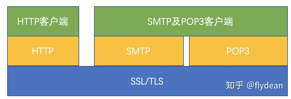 SSL/TLS是一个安全通信框架,上面可以承载HTTP协议或者SMTP/POP3协议等。下层基于TCP可靠数据连接实现。