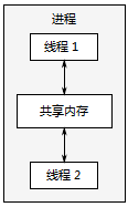 图 1.4 同一进程中的一对并发运行的线程之间的通信