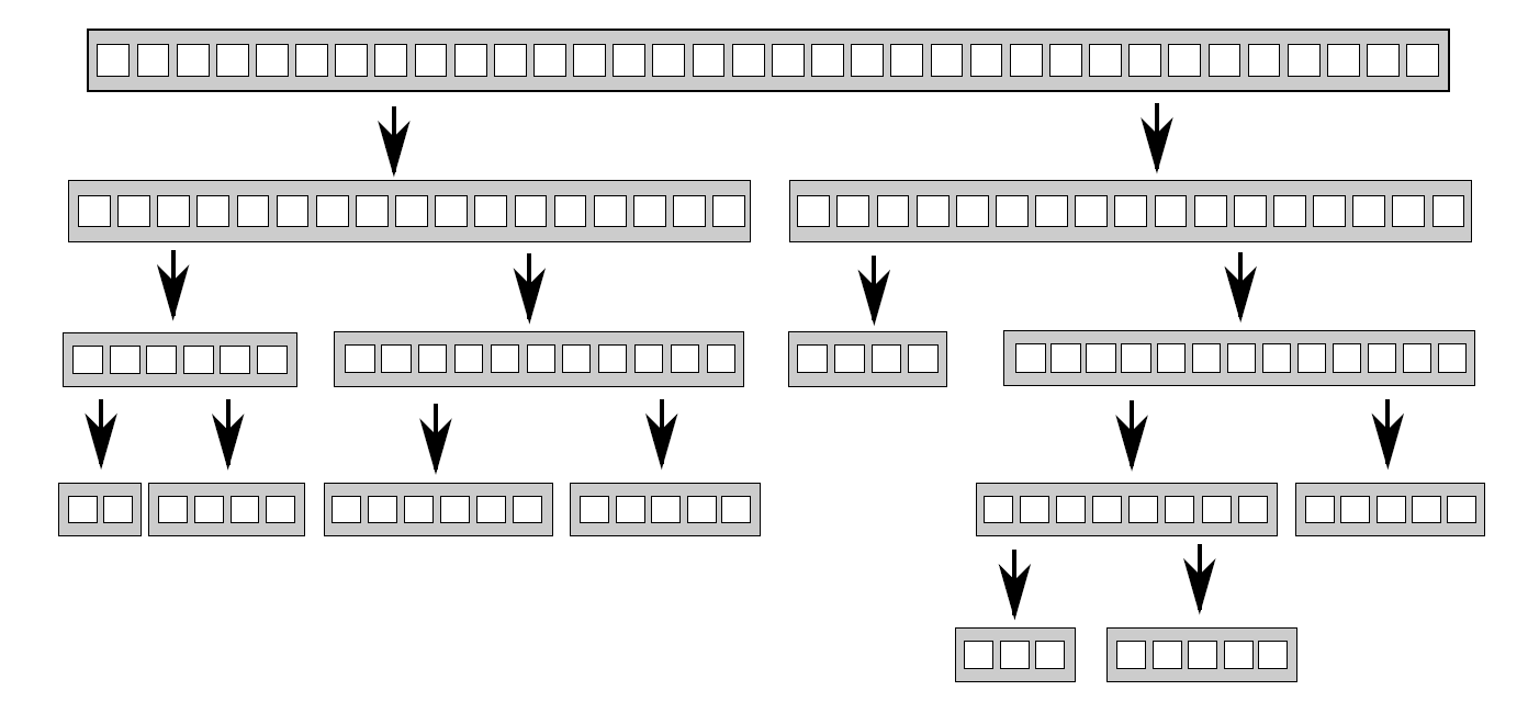 虽然这个技术十分强大,但是并不是哪都适用。有时不能像之前那样,对任务进行整齐的划分,因为只有对数据进行处理后,才能进行明确的划分。这里特别适用了递归算法,就像快速排序;下面就来看看这种特别的方式。