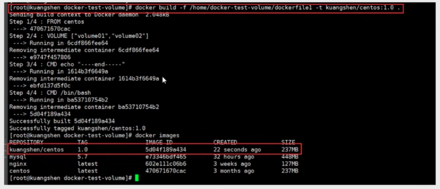 1 2 3 4 5 6 7 8 9 10 # 创建一个dockerfile文件,名字尽量为dockerfile # 文件中的恩荣,指令大写,参数 ➜ test_volume cat dockerfile1 FROM centos VOLUME ["volume01","volume02"] CMD echo "--end--" CMD /bin/bashs # 这里的每个命令,都是镜像中的一层。
