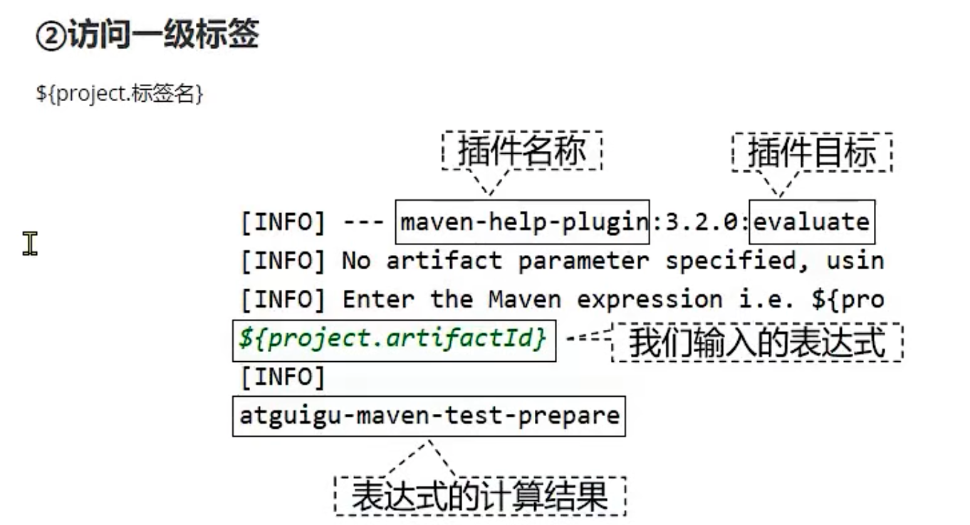 使用表达式${project.xxx}可以访问当前POM中定义的元素值。也就是POM中配置的任何元素都可以用属性值进行访问解析。