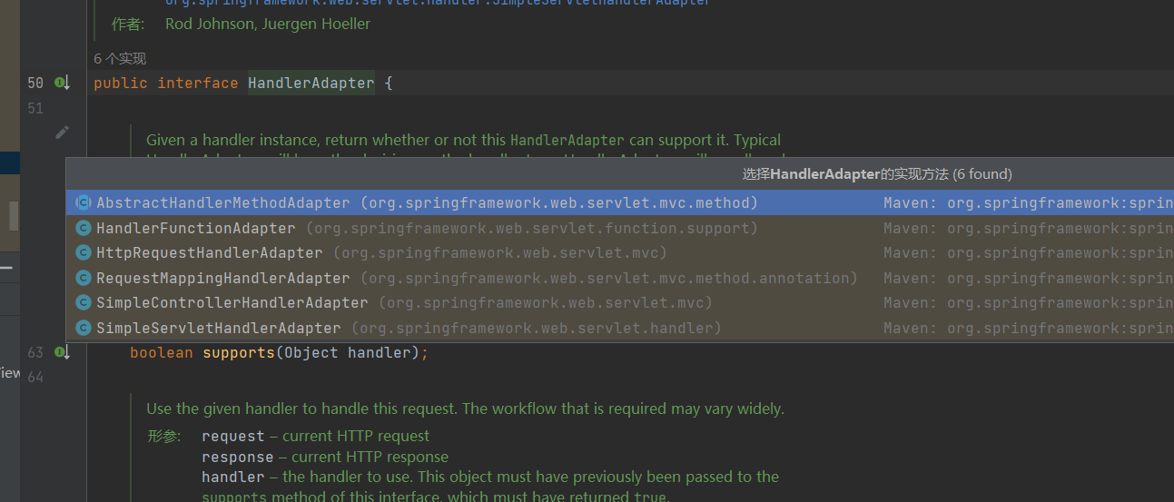HandlerMappingAdapter用来对Handler的处理过程进行封装。其中RequestHandlerMapping就是用来封装@RequestMapping的映射的,HandlerFunctionAdapter是用来支持函数映射的。