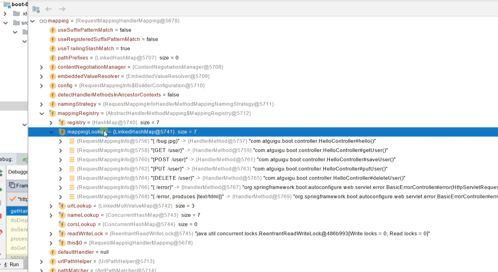 RequestMappingHandlerMapping,保存了RequestMapping注解保存的uri和方法的映射。mappingRegistry保存了映射信息。