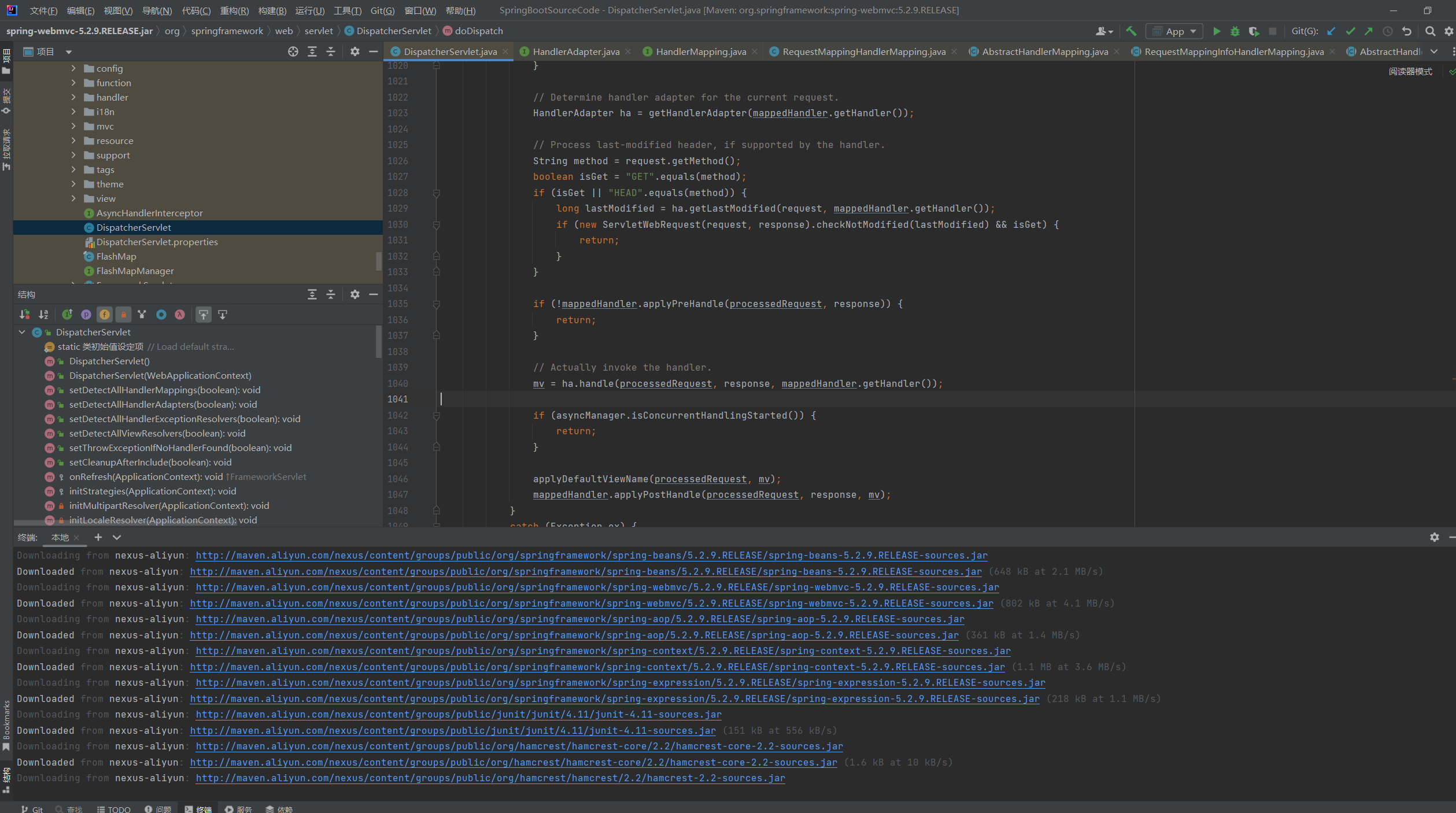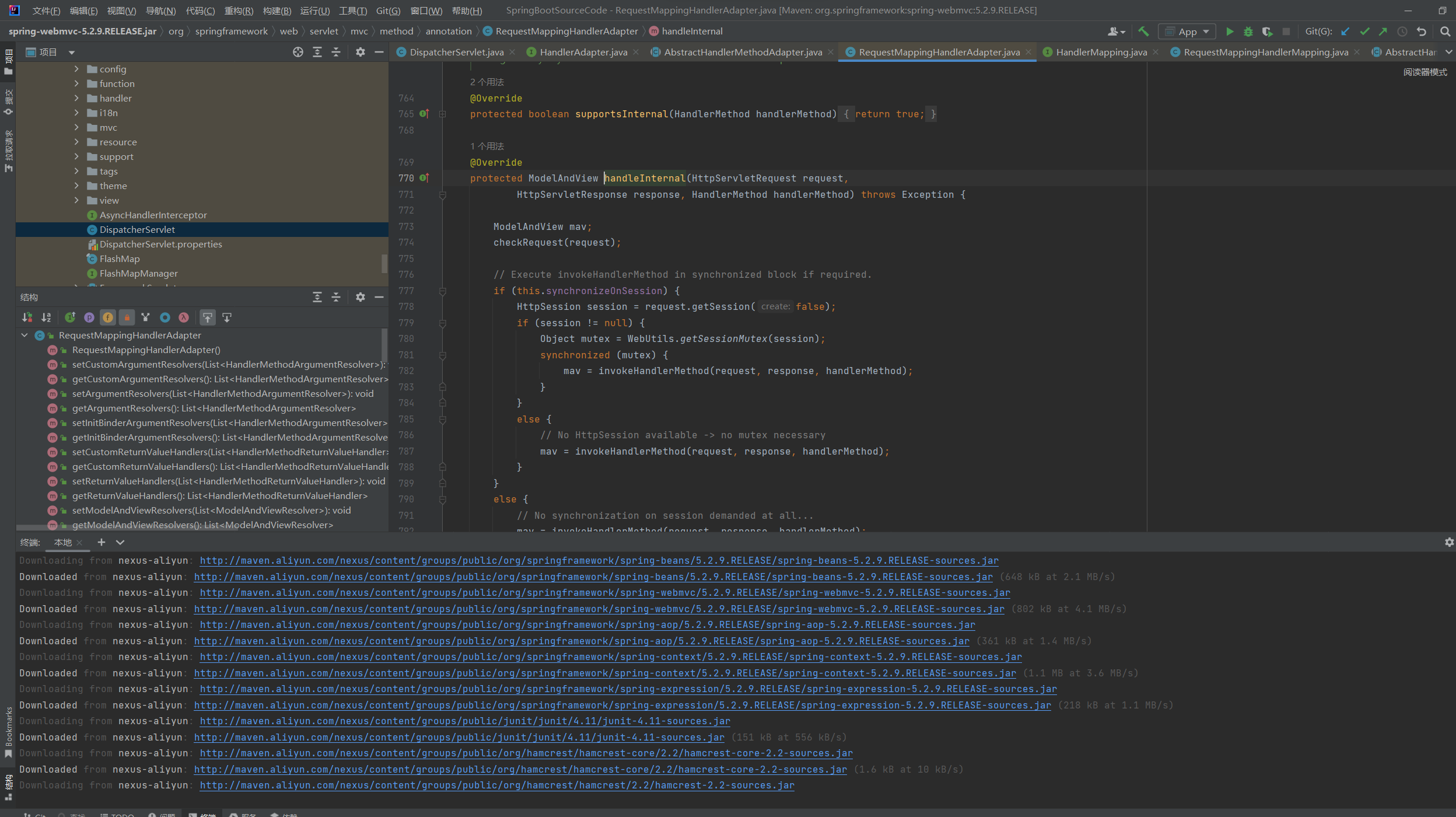 调用adapter的handler方法进行真正的处理逻辑。最终还是调用RequestMappingHandler的handler方法进行处理