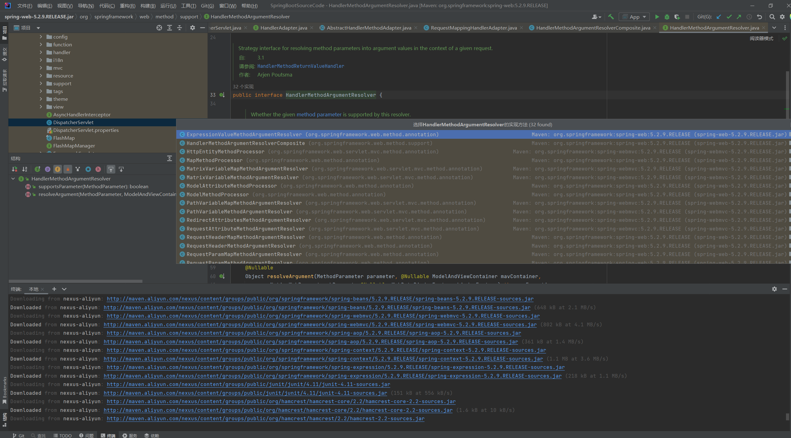 同时方法中也可以看到方法支持的返回值处理器。 spring中很多地方都遵循这种设计模式(策略模式),定义一个共同的接口、给接口定义多种不同的实现、建立条件和实现之间的映射关系,从而可以面向不同的场景和进行灵活的扩展。