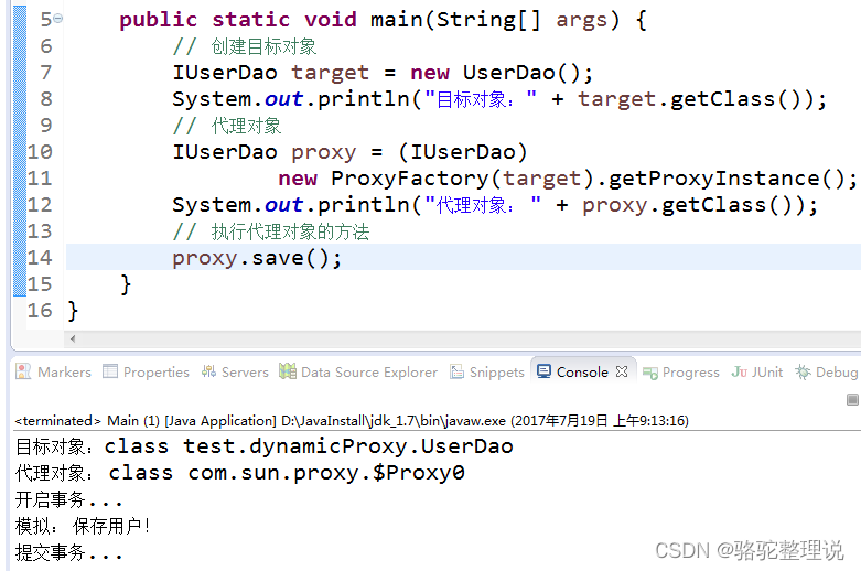| IUserDao proxy = (IUserDao)new ProxyFactory(target).getProxyInstance();