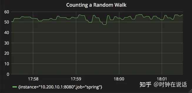 下图表示的是一个没有速率聚合的 counter,这种计数器几乎没什么用,因为它反映的只是 counter 的增长速度随时间的变化关系。