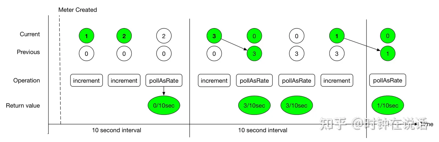 执行服务端速率计算的监控系统期望能在每个发布间隔报告计数绝对值。例如,从应用程序启动开始 counter 计数器在每个发布间隔产生的所有增量的绝对计数和。