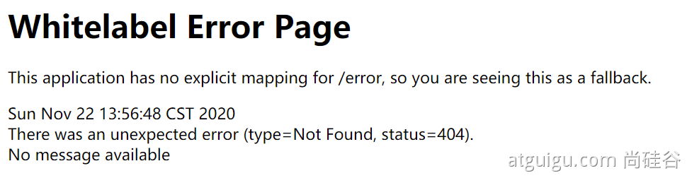 - 对于机器客户端,它将生成JSON响应,其中包含错误,HTTP状态和异常消息的详细信息。对于浏览器客户端,响应一个“ whitelabel”错误视图,以HTML格式呈现相同的数据
