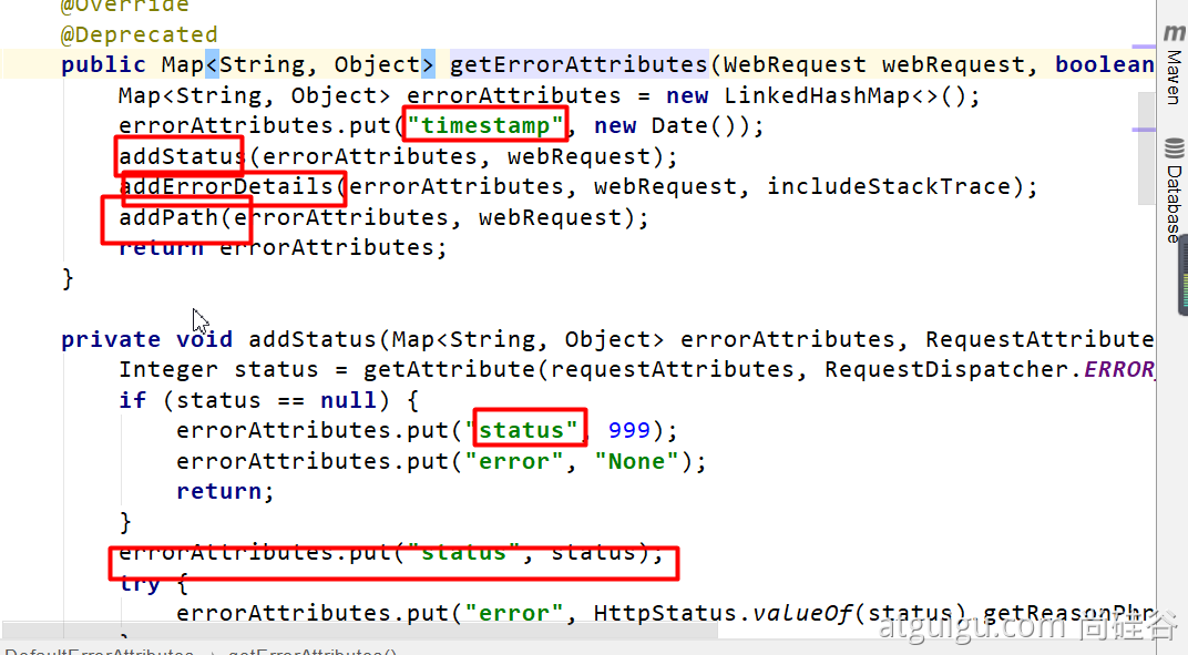 - 容器中的组件:类型:DefaultErrorAttributes -> id:errorAttributes