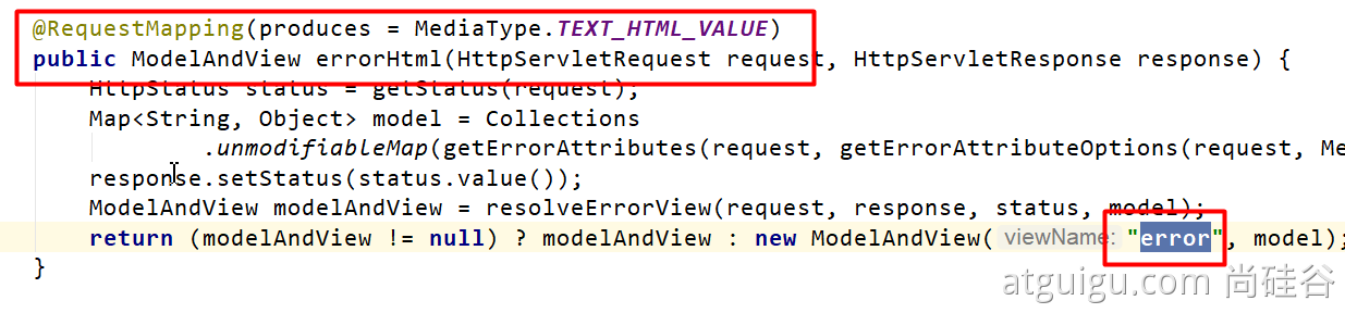 - 处理默认 /error 路径的请求;页面响应 new ModelAndView(“error”, model);