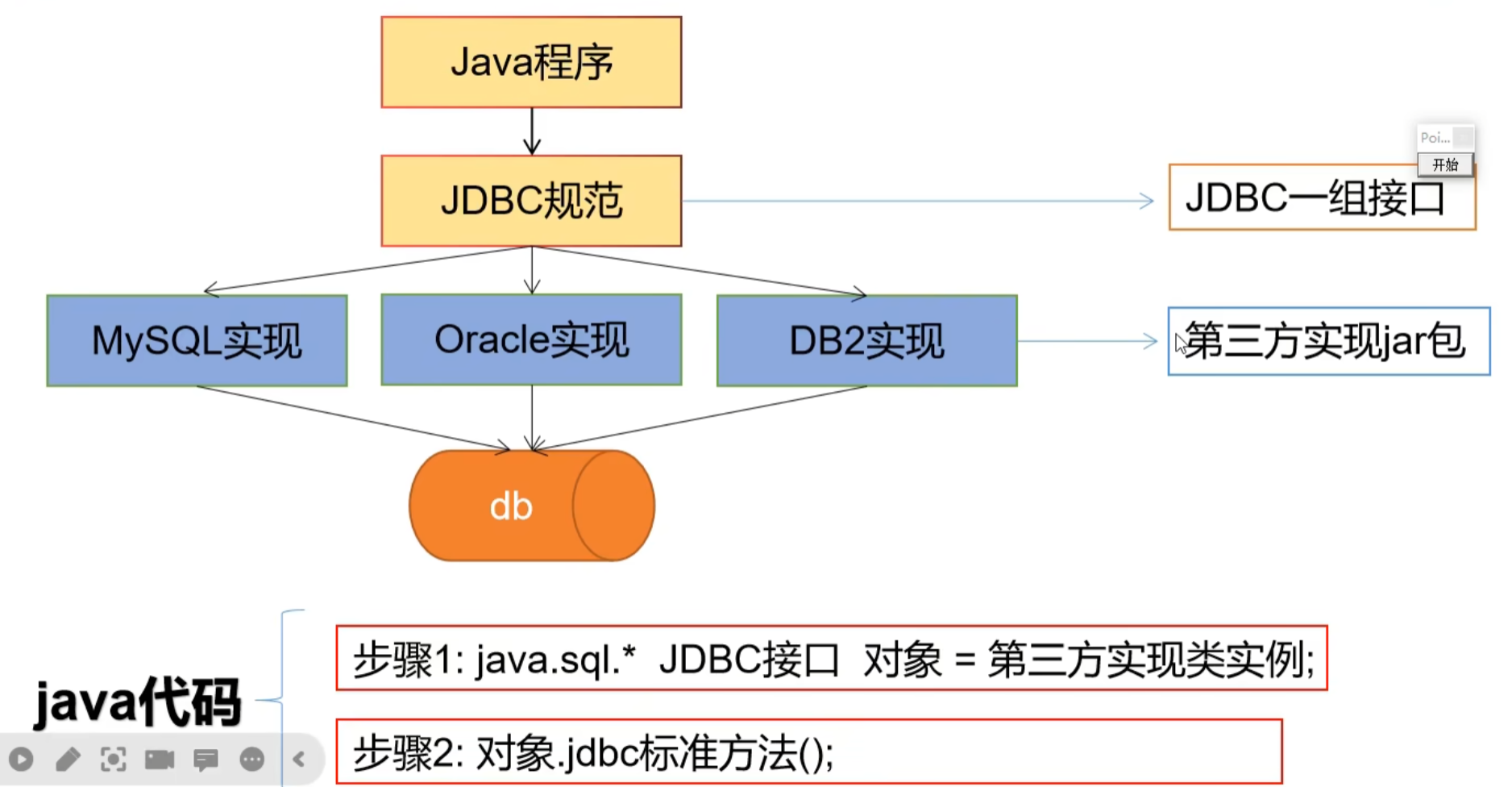 - JDBC数据库连接:JDBC定义了数据库操作的规范,数据库驱动实现了数据库操作的规范。