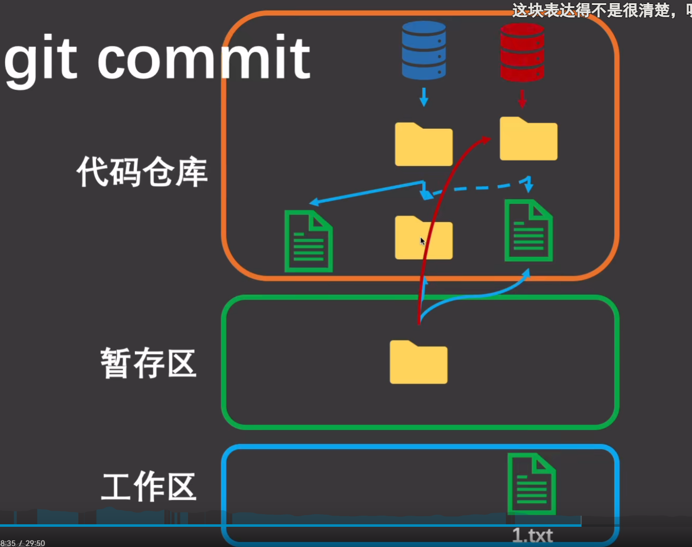 - git commit 生成新的commit,指向新的Tree。